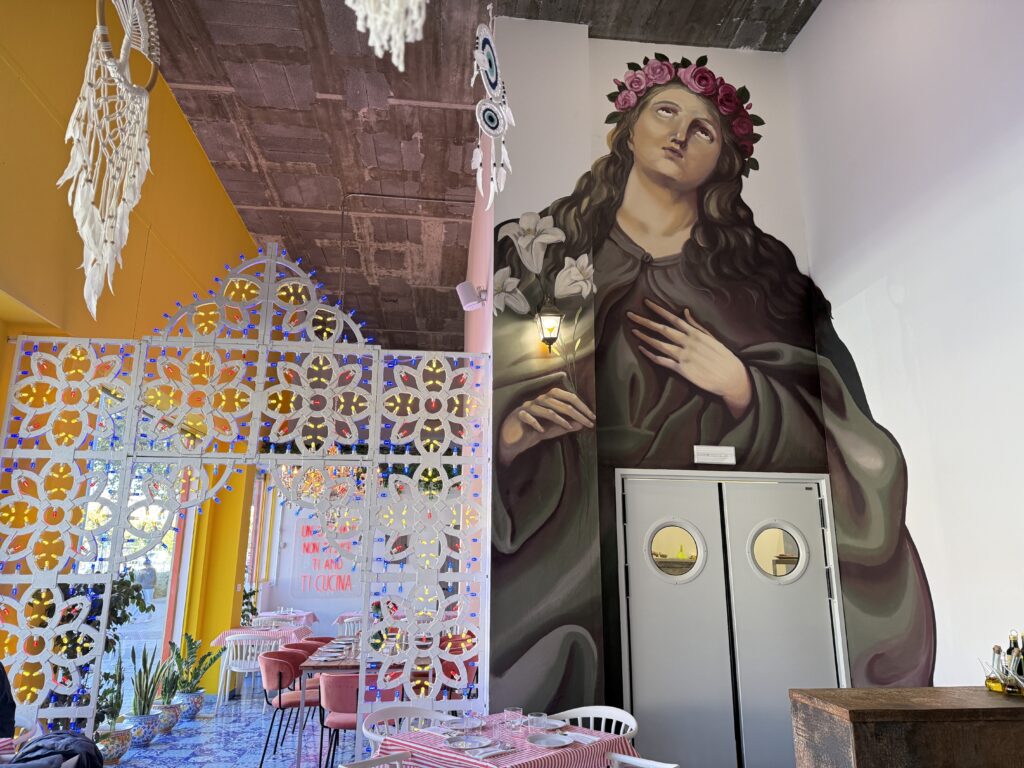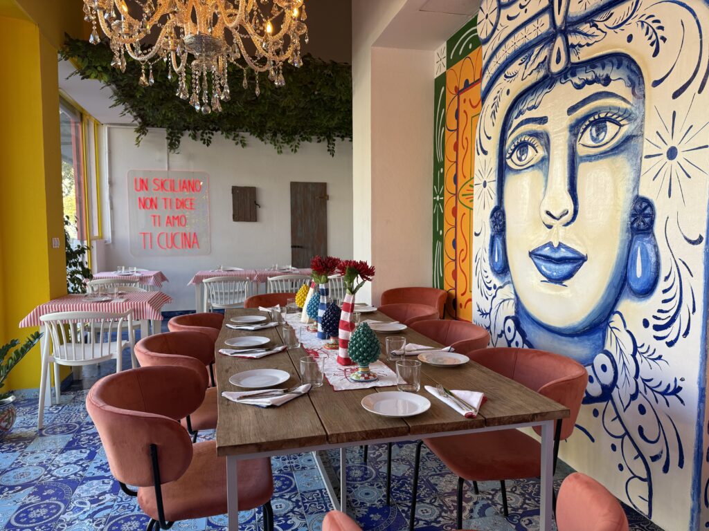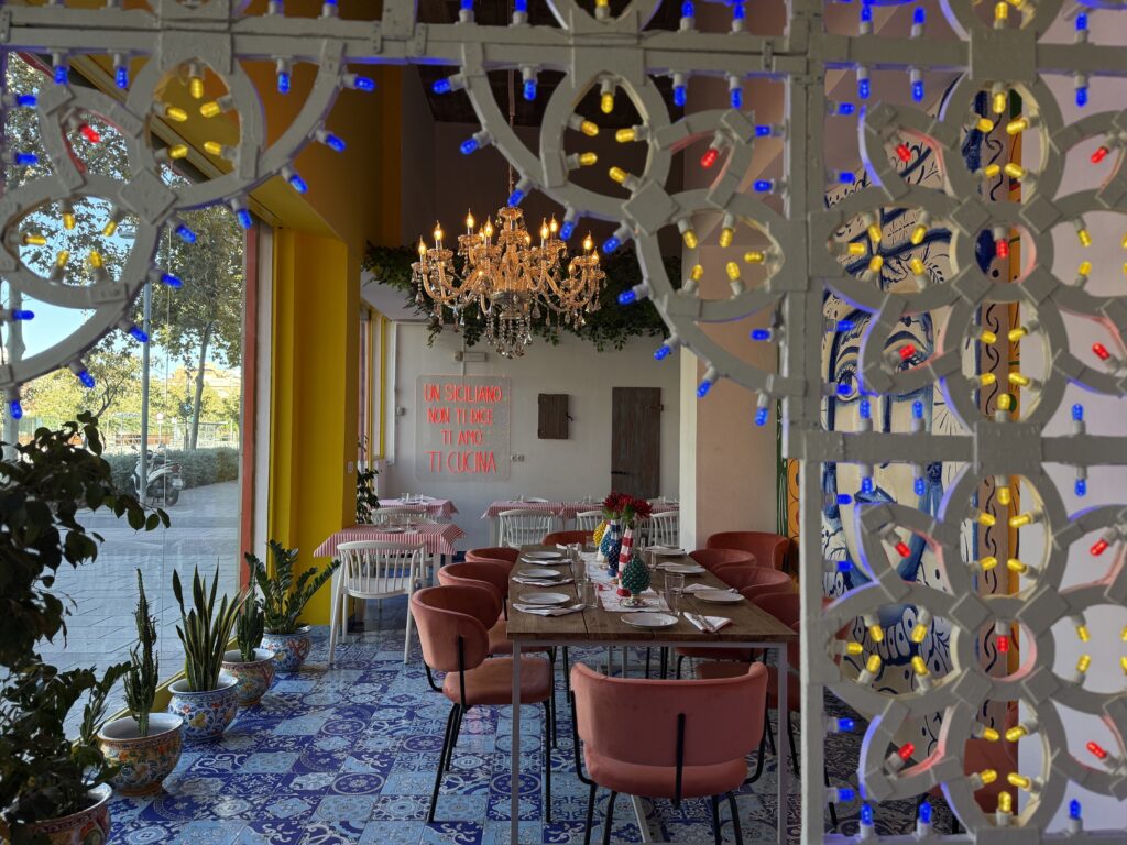 Es un espacio que mezcla tradición con juego y picardía. Que no teme al color ni a la exageración —porque la exageración también es Sicilia.