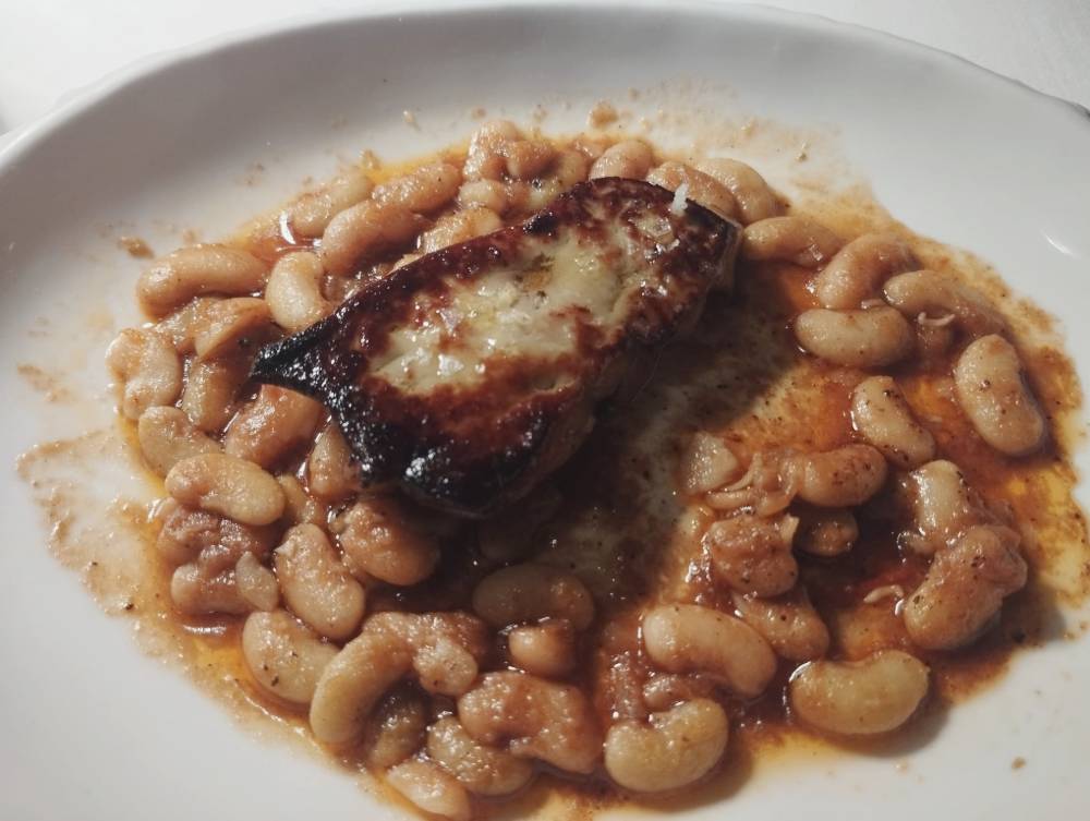 Foie gras de Vilobí d’Onyar con ‘mongetes del ganxet’.