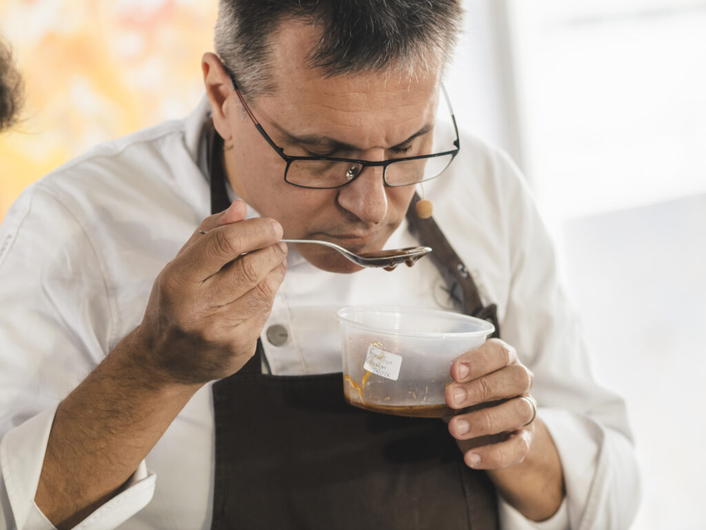 Oriol Castro olfateando una de sus elaboraciones. ©Eric Artigas